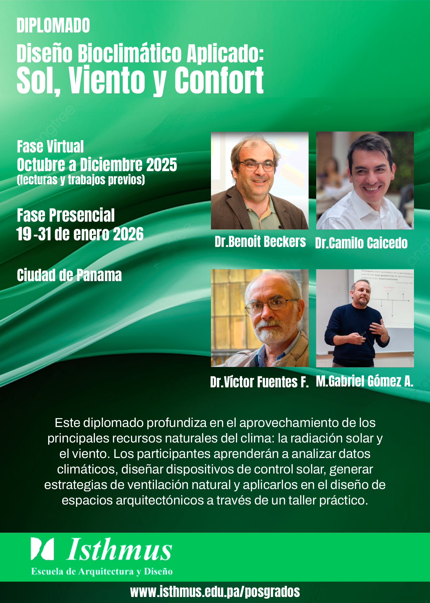 Este diplomado permite comprender las dinámicas del sol y del viento para convertirlos en recursos de diseño, logrando que los diseños no solo respondan al clima, sino que lo aprovechen para crear espacios confortables y contribuyan a la sostenibilidad.